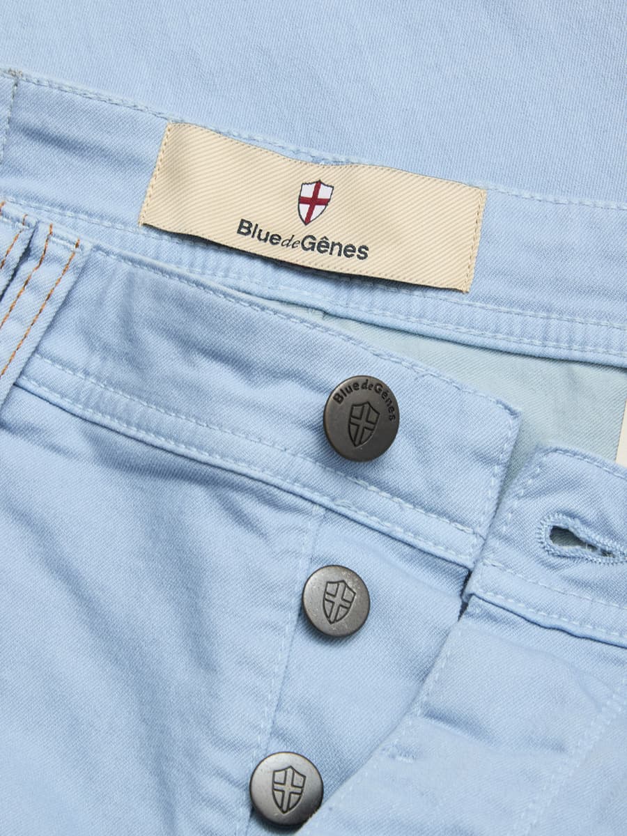 Vor über 400 Jahren stellten die Hafenarbeiter in Genua, robuste Kleidung aus arabischer Baumwolle, genannt‚ ‚Geanes fustian‘, her. Mit Indigo blau gefärbt eignete sich das strapazierfähige Material ideal für die Hafenarbeit. Das ‚Blau aus Genua‘ – ‚Bleu de Gênes‘ wird in die ganze Welt exportiert und macht die ‚Blue Jeans‘ weltbekannt. Diese Geschichte inspirierte eine wunderschönen Denim-Brand aus Dänemark zu ihrem Namen: Blue de Gênes. „Hier fließt Indigo durch die Adern“, scherzt man. Doch es stimmt. Man merkt jeder einzelnen Denim an, wie viel Herzblut in ihr steckt. In einer kleinen Denimfabrik in Firenze, Italien, werden die Denims liebevoll von Hand gefertigt. Individuelle Details, persönlich signierte Labels und historische Herstellungsweisen, wie verstärkte Hintertaschen und alte Nieten, verweisen auf eine andere Zeit, in der die Denimproduktion noch echte Handwerkskunst war. Durch die Kombination von klassischen, traditionellen Werten und der Neudefinierung des stylischen, modernen Mannes entsteht ein authentischer, raffinierter und doch kerniger Vintage-Look.