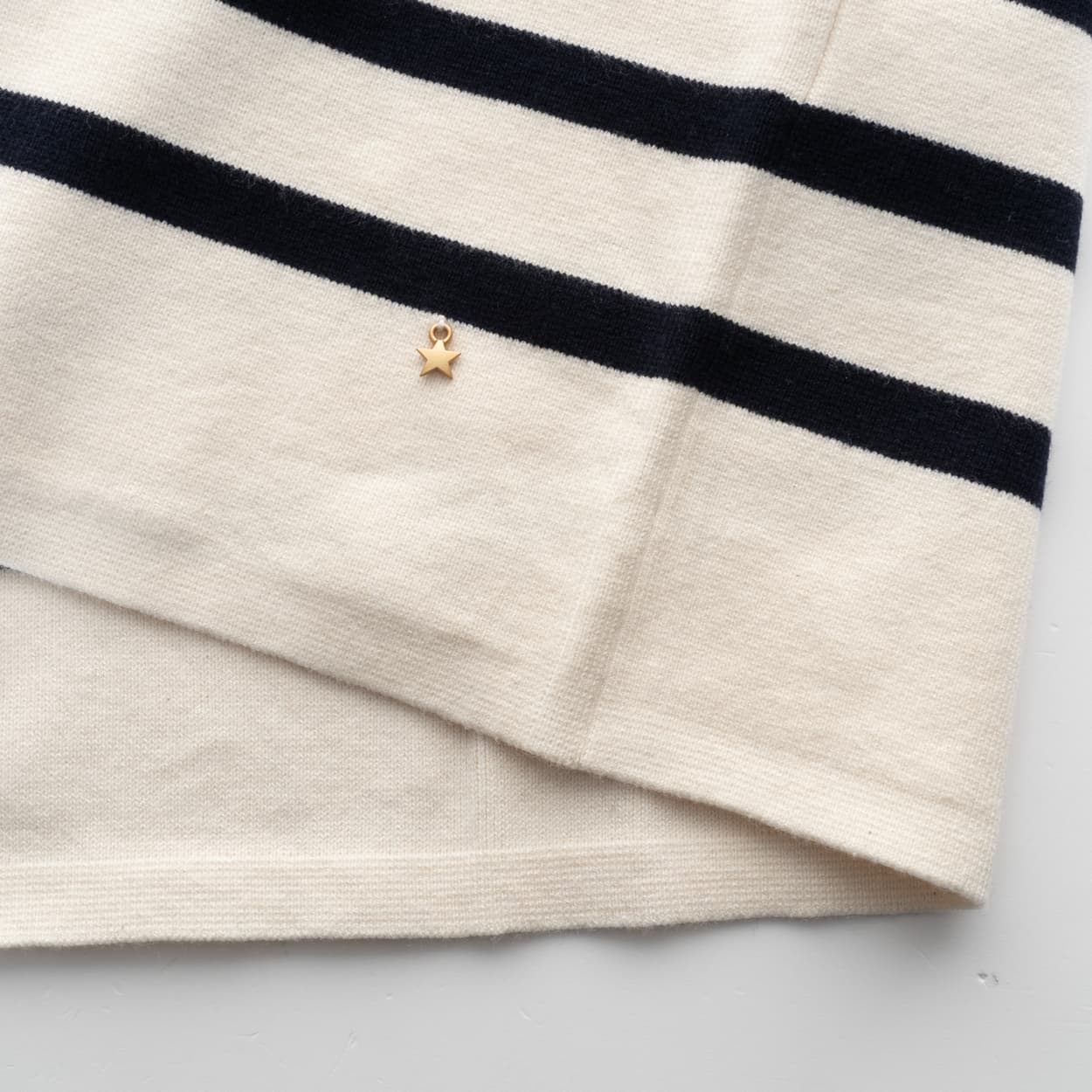 Feiner, gestreifter Strickpullover „Biscote“ von Des Petits Hauts. Das Modell überzeugt durch seinen entspannten Schnitt und das harmonische Streifenbild in Creme mit Marine- oder Mousse-Akzenten. Die hochwertige Materialmischung mit Baumwolle, Viskose und einem feinen Anteil Kaschmir sorgt für eine angenehme Haptik, leichte Wärme und hohen Tragekomfort. Ein vielseitiger Pullover für den Alltag – lässig, feminin und zeitlos.