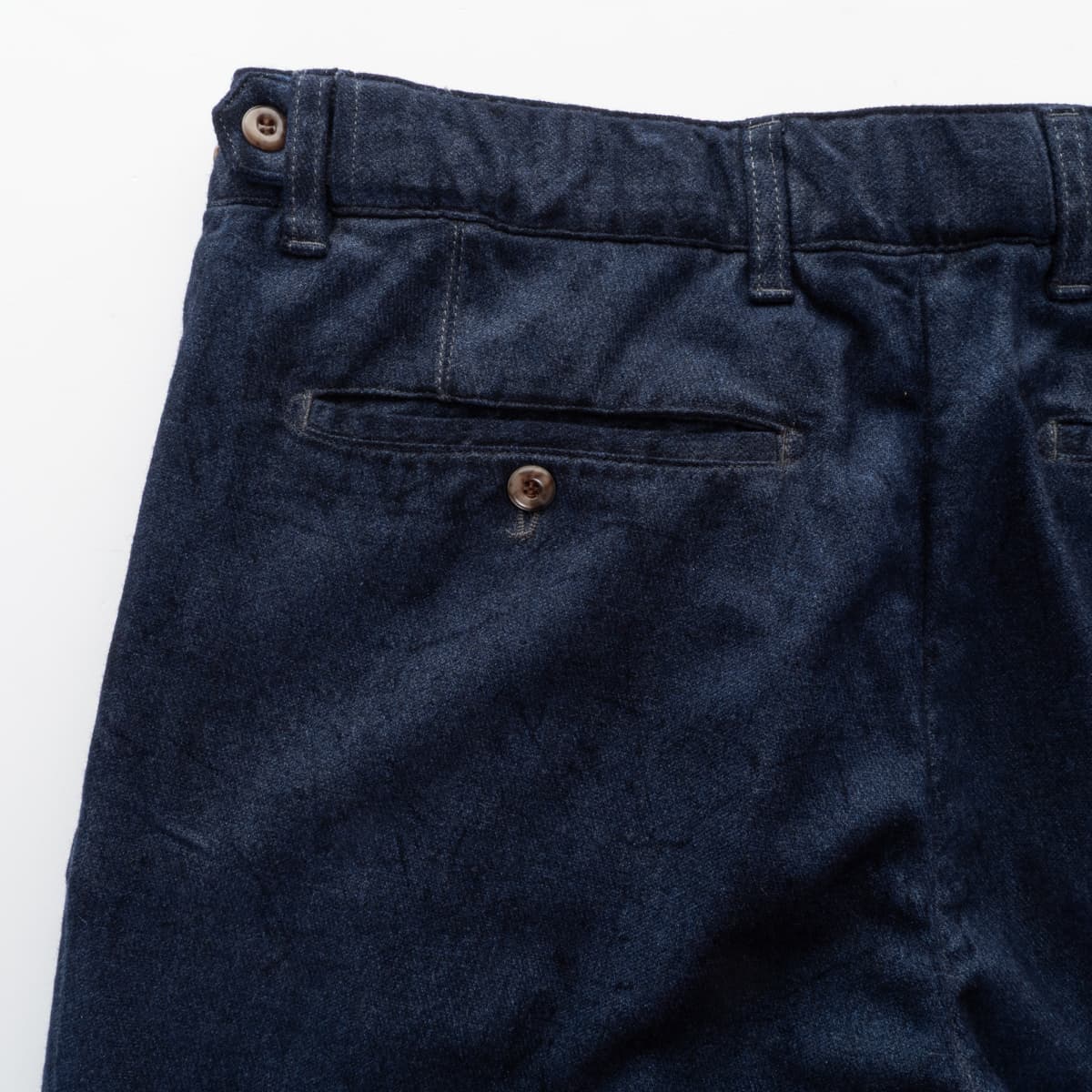 Die Hose von Myths kombiniert eine edle Wollmischung mit modernem Schnitt und smarten Details. Dank des dezenten Flanell-Finishs hat sie eine weiche, leicht angeraute Oberfläche, die sowohl Komfort als auch Struktur verleiht. Die figurschmeichelnde Bundfalte, die mittlere Leibhöhe und das leicht schmal zulaufende Bein sorgen für eine ausgewogene Silhouette. Seitliche Eingrifftaschen sowie geknöpfte Gesäßtaschen komplettieren das Design. Der Bund ist außen mit Knopfverstellern ausgestattet – ideal für eine individuelle Anpassung. Die besondere Spray-Dye-Färbung sorgt für eine subtile Tiefe und unregelmäßige Struktur in der Farbgebung.