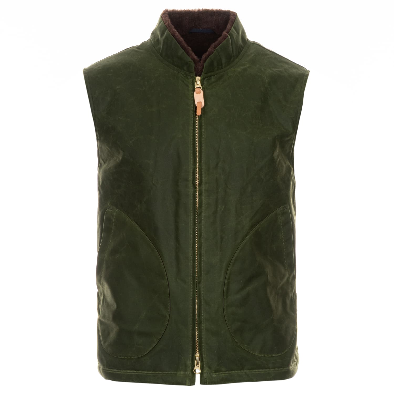 Der Zwei-Wege-Reißverschluss ist mit einem Zipper aus pflanzlich gegerbtem Naturleder versehen. Alle Nähte wurden mit wasserabweisendem Garn verarbeitet. Hergestellt mit Leidenschaft in Italien.