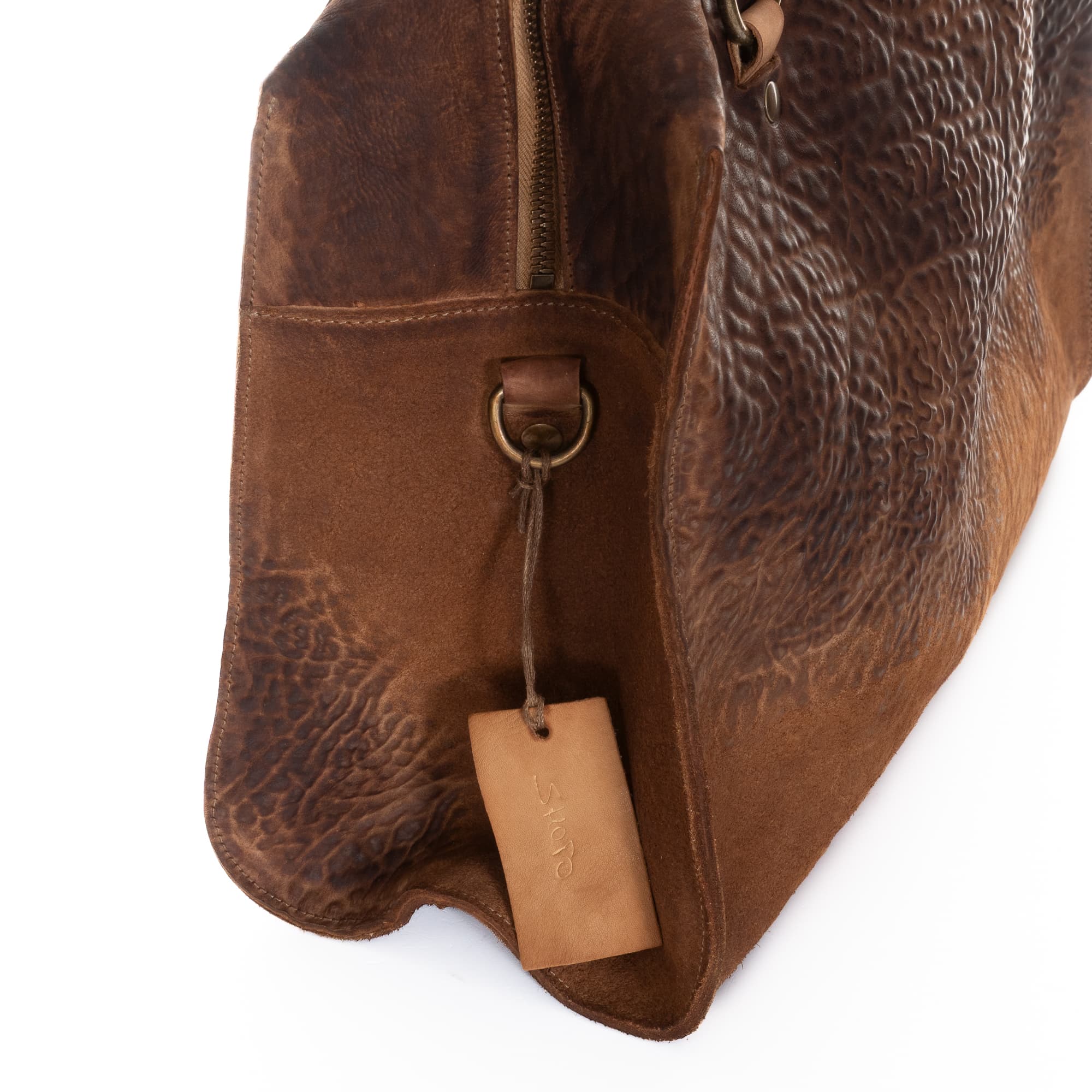Durch die spezielle Lederbehandlung bei der Herstellung dieses Produkts, sowie anderen speziellen Behandlungstechniken (Wasch- und Färbetechniken), ist jedes Exemplar einzigartig. Aufgrund dessen, individueller Handarbeit und der Naturbedingtheit der Materialen, können die Farben, Prägung und Struktur abweichen - Unikate eben.